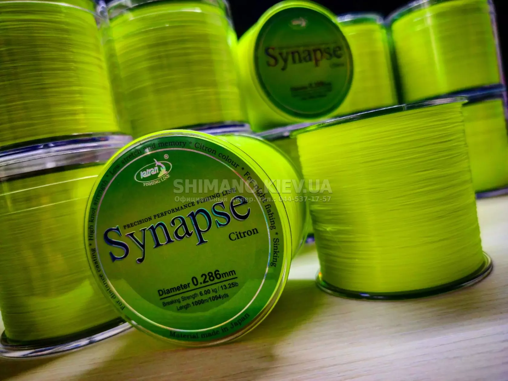 Волосінь Katran Synapse Citron – гладка, м'яка і міцна на вузлах, тонка волосінь кислотно-жовтого кольору. Виготовлена із сополімеру з низьким ступенем розтяжності 12-13% (вимірюється при прикладенні 50% навантаження від максимальної вказаної межі міцності). Спеціальне покриття жилки знижує тертя в пропускних кільцях вудилища під час закидання, що дозволяє робити більш далекі закиди. Яскраве лимонне забарвлення робить волосінь добре видимою в нічний час у світлі ліхтарика. Мононитка має зручні позначки через кожні 250 метрів, що дозволяє рівномірно розподілити моток на кілька котушок. Волосінь Katran Synapse Citron – чудовий варіант для коропової риболовлі.- для далекого закидання;