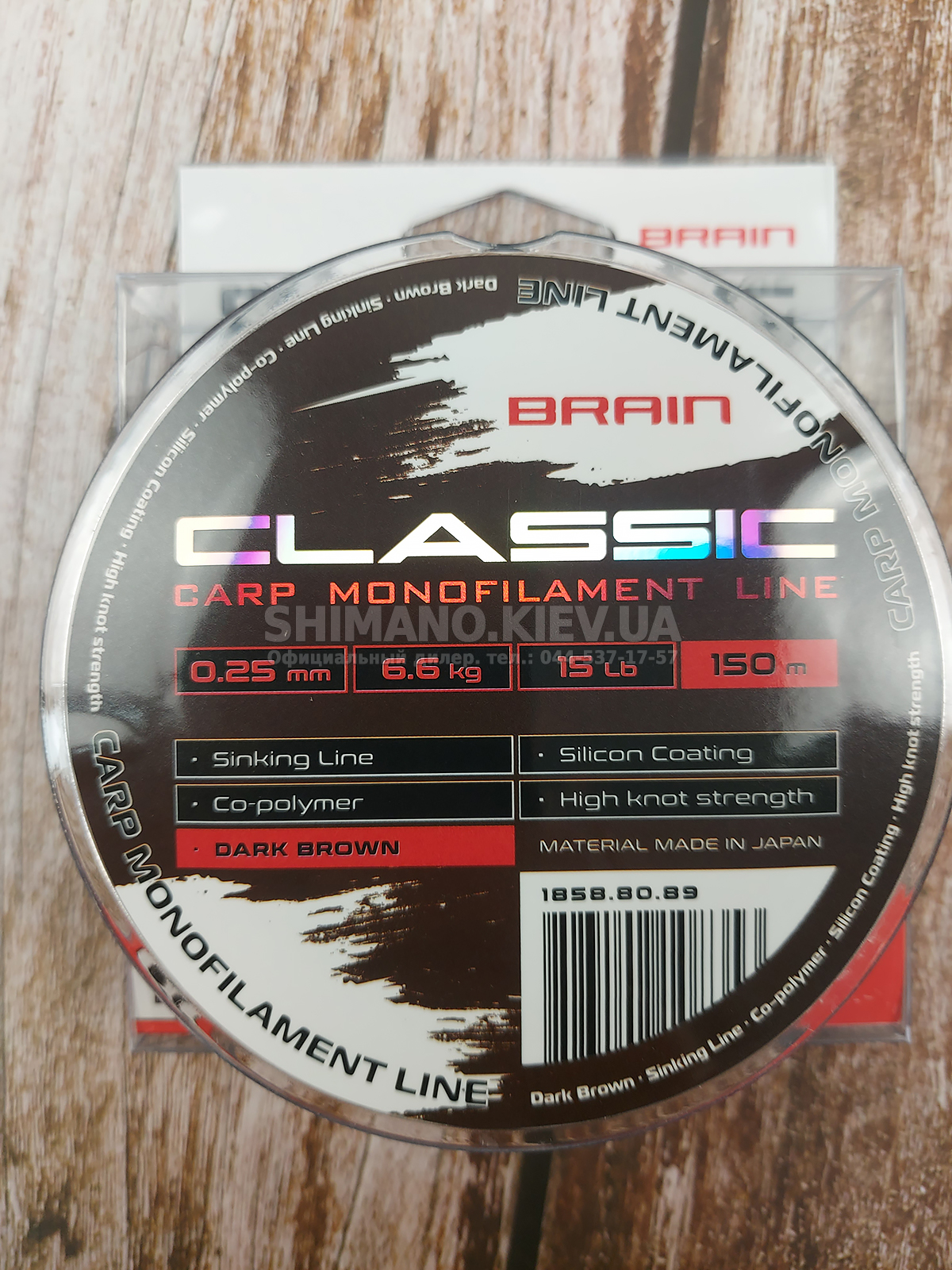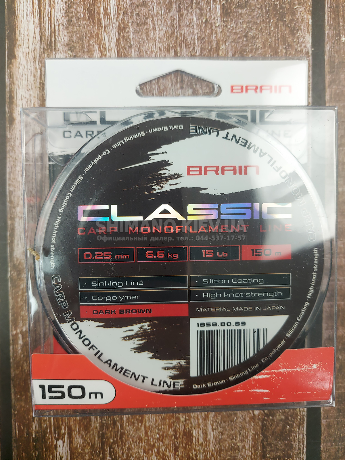 Жилка Brain Classic Carp Line 150m 0,25mm 6,6kg 15lb Dark brown