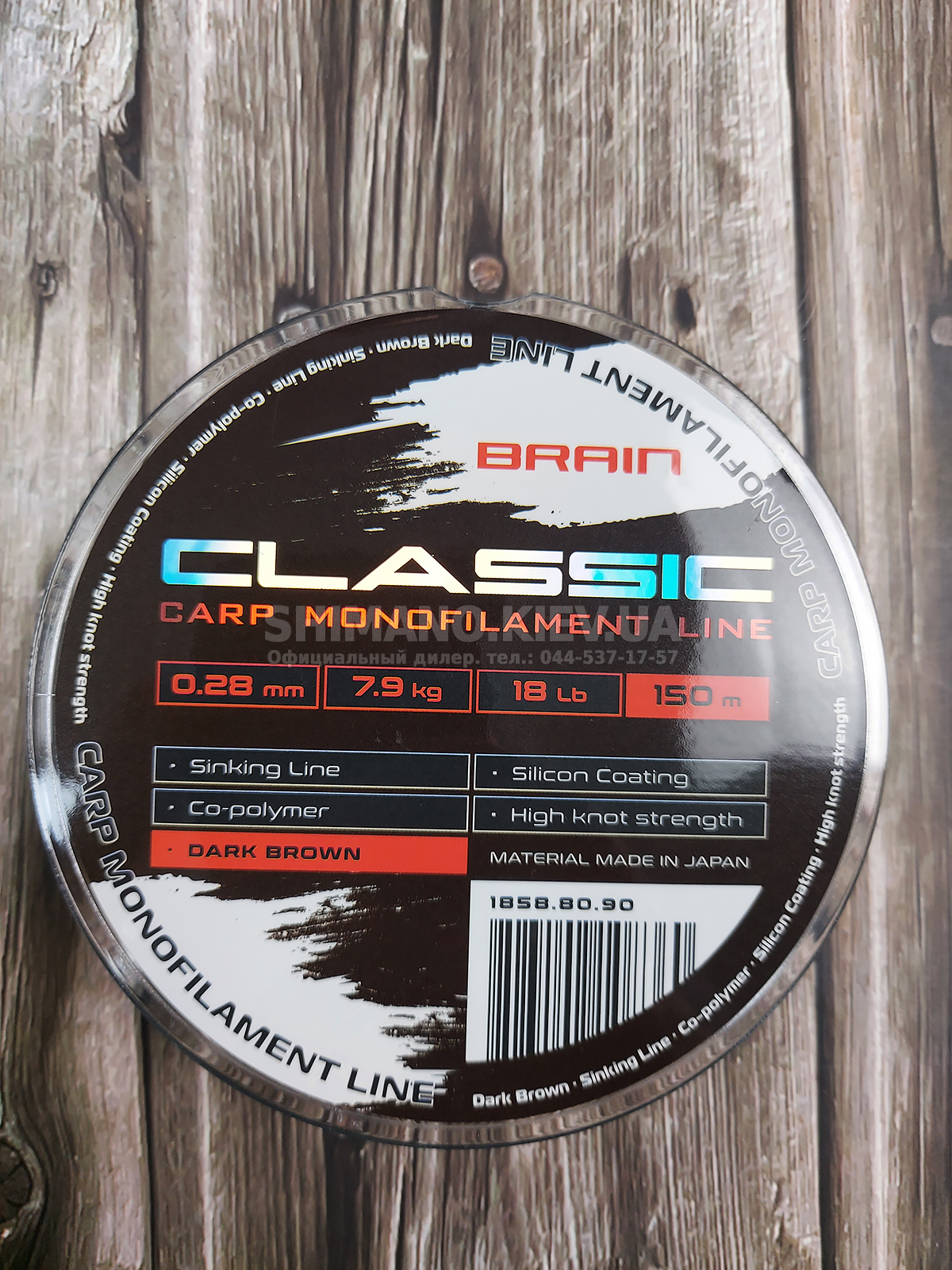 Жилка Brain Classic Carp Line 150m 0,28mm 7,9kg 18lb Dark brown