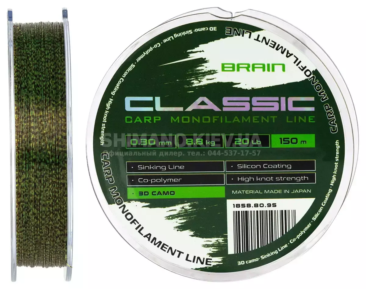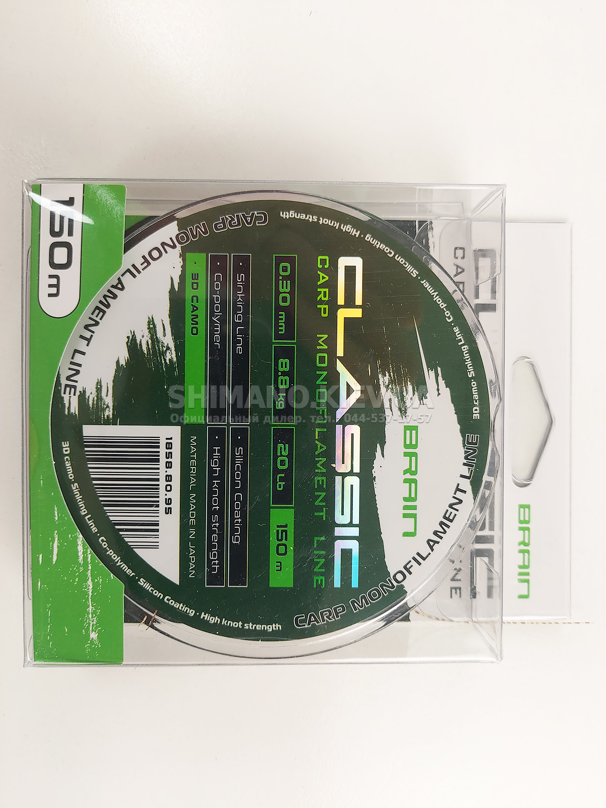 Опис Brain Classic Carp Line 150m 0,30mm 8,8kg 20lb 3D camo