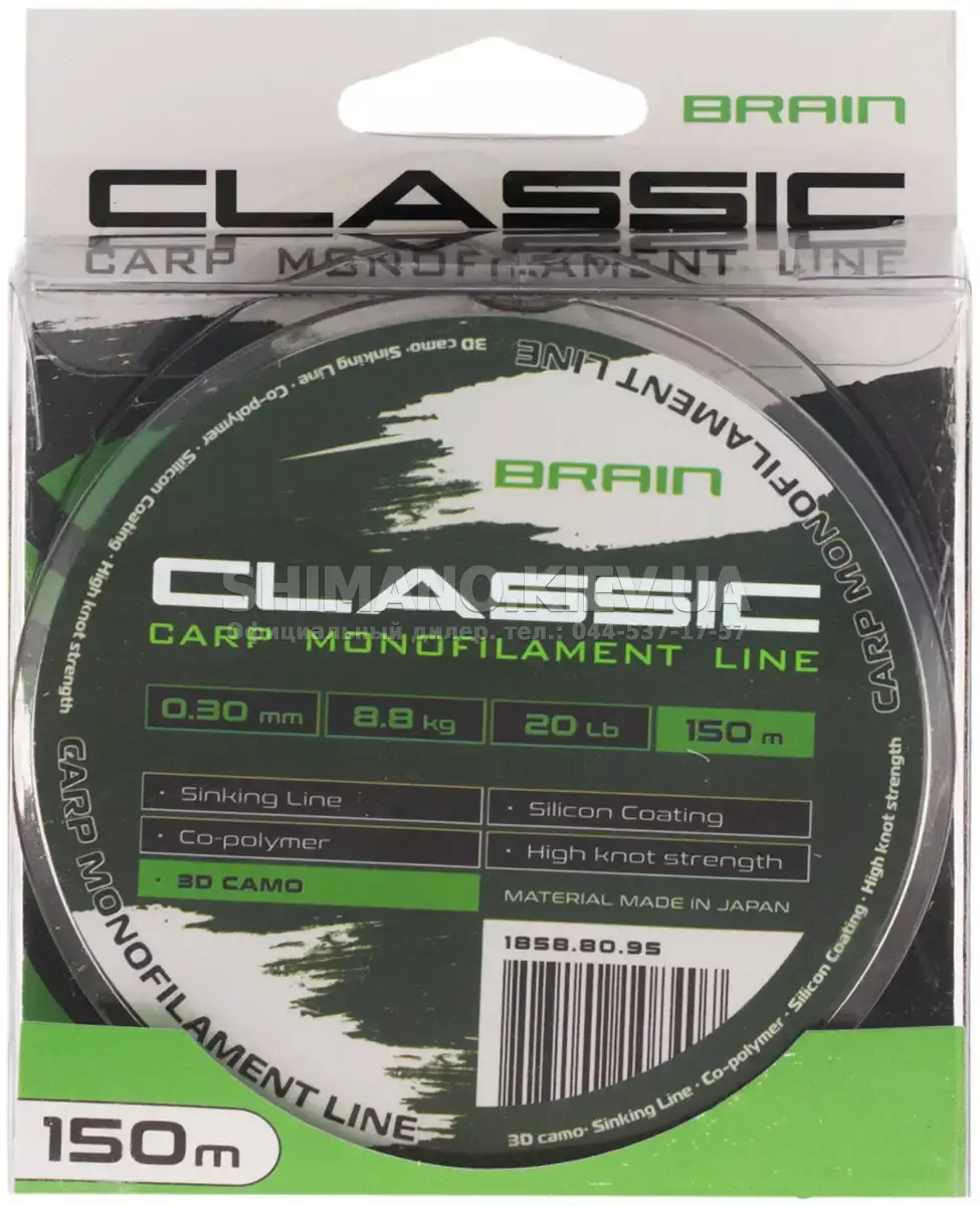 Відгуки Brain Classic Carp Line 150m 0,30mm 8,8kg 20lb 3D camo