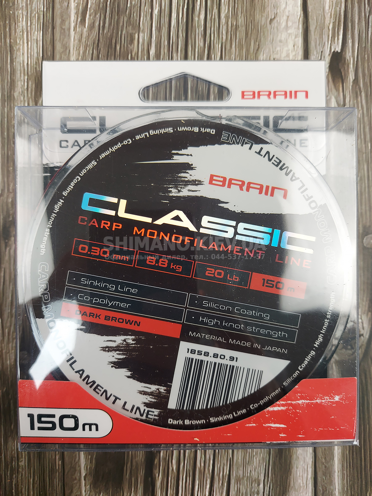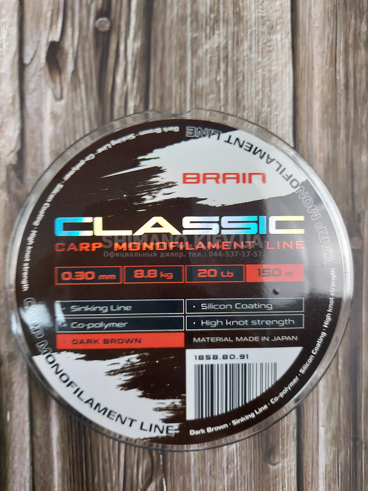 Жилка Brain Classic Carp Line 150m 0,30mm 8,8kg 20lb Dark brown