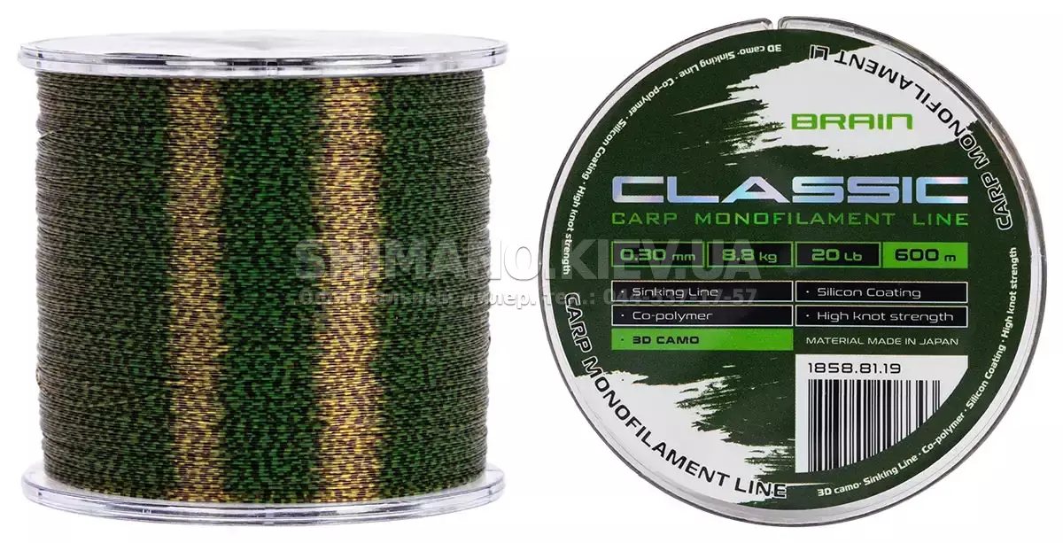Жилка Brain Classic Carp Line 600m 0,30mm 8,8kg 20lb 3D camo