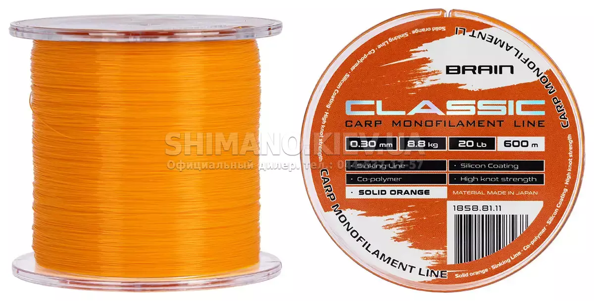 Опис Brain Classic Carp Line 600m 0,30mm 8,8kg 20lb Solid orange