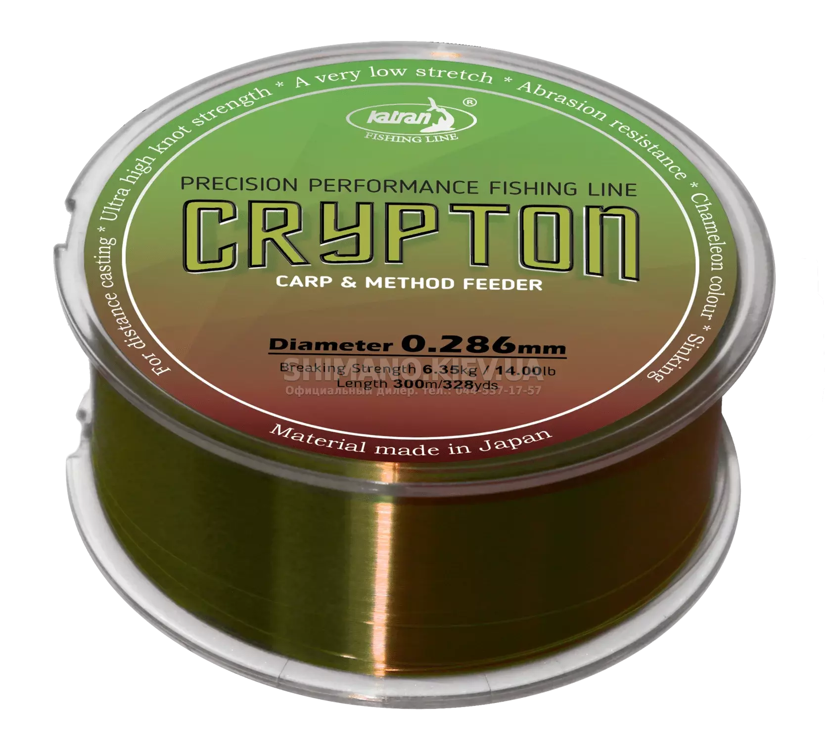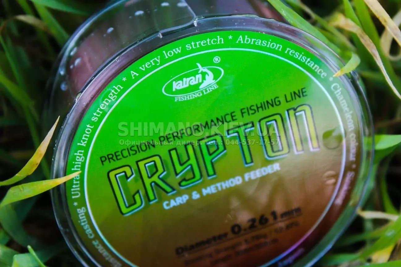 Crypton Carp & Method Feeder - це унікальна волосінь спеціально розроблена для лову коропа методною фідерною снастю. Була застосована інноваційна технологія відбиття світла, яка найкраще маскує волосінь у будь-якій воді. Залежно від рівня яскравості та кута зору волосінь змінює колір від матово-зеленого до коричневого. Тонуча волосінь з низьким ступенем розтягування на 13-14% забезпечує максимальний контроль і значно збільшує її чутливість. Чудова стійкість до стирання - ще одна цінна перевага волосіні Crypton Carp & Method Feeder при лові в складних умовах.- для далекого закидання.
