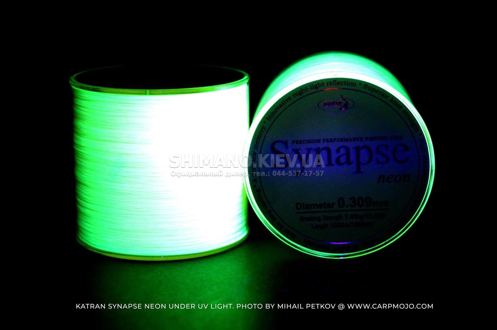 Волосінь Katran Synapse Neon - це найкращий вибір жилки для членів понад 10 національних команд на чемпіонаті світу з карпфішингу з 2014 року. У Болгарії та Хорватії Synapse Neon вважається однією з найкращих лісок для далекого закидання з дальністю польоту до 200 метрів. У 2016 виробник розширив діапазон діаметрів та розмоток у модельному ряді. Гладка флуоресцентна волосінь з мононитки не тільки набагато менш помітна у воді, ніж будь-яка інша кольорова волосінь, Neon також відображає штучне світло, що робить цю волосінь безцінною під час риболовлі вдень і добре помітною вночі.- інноваційна тонка волосінь з флуоресцентного кополімеру для далекого закидання;