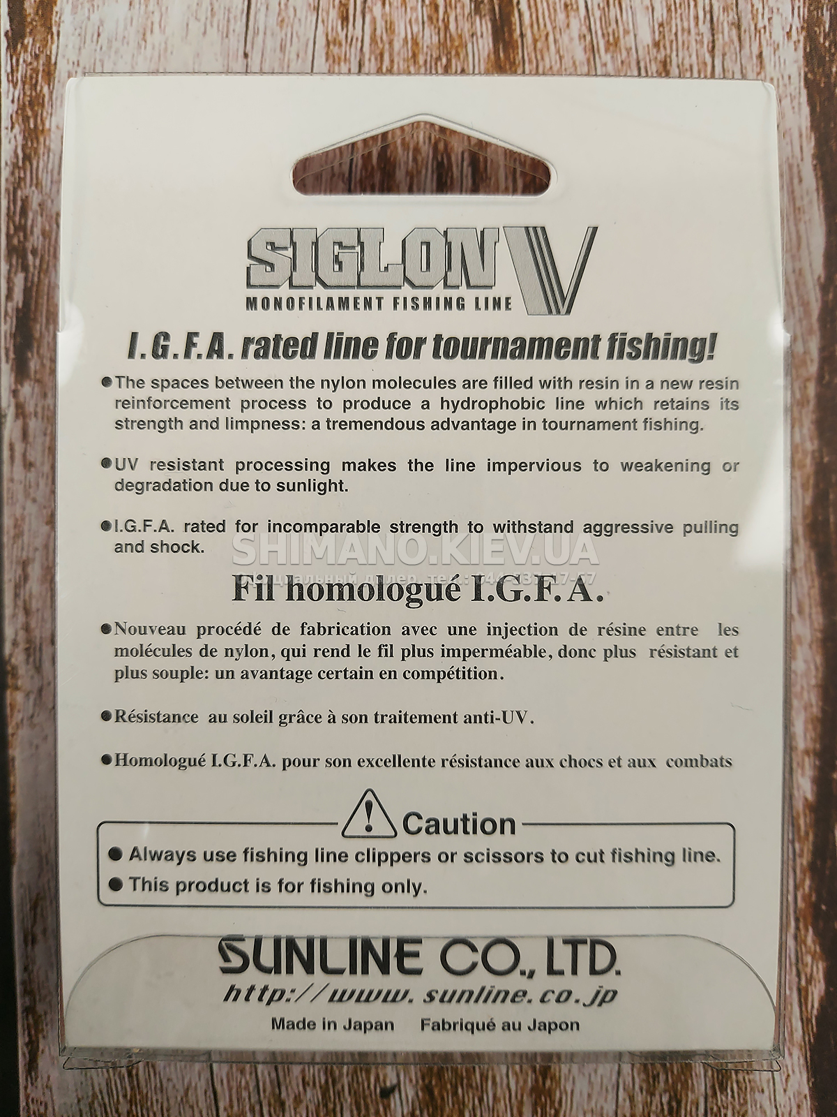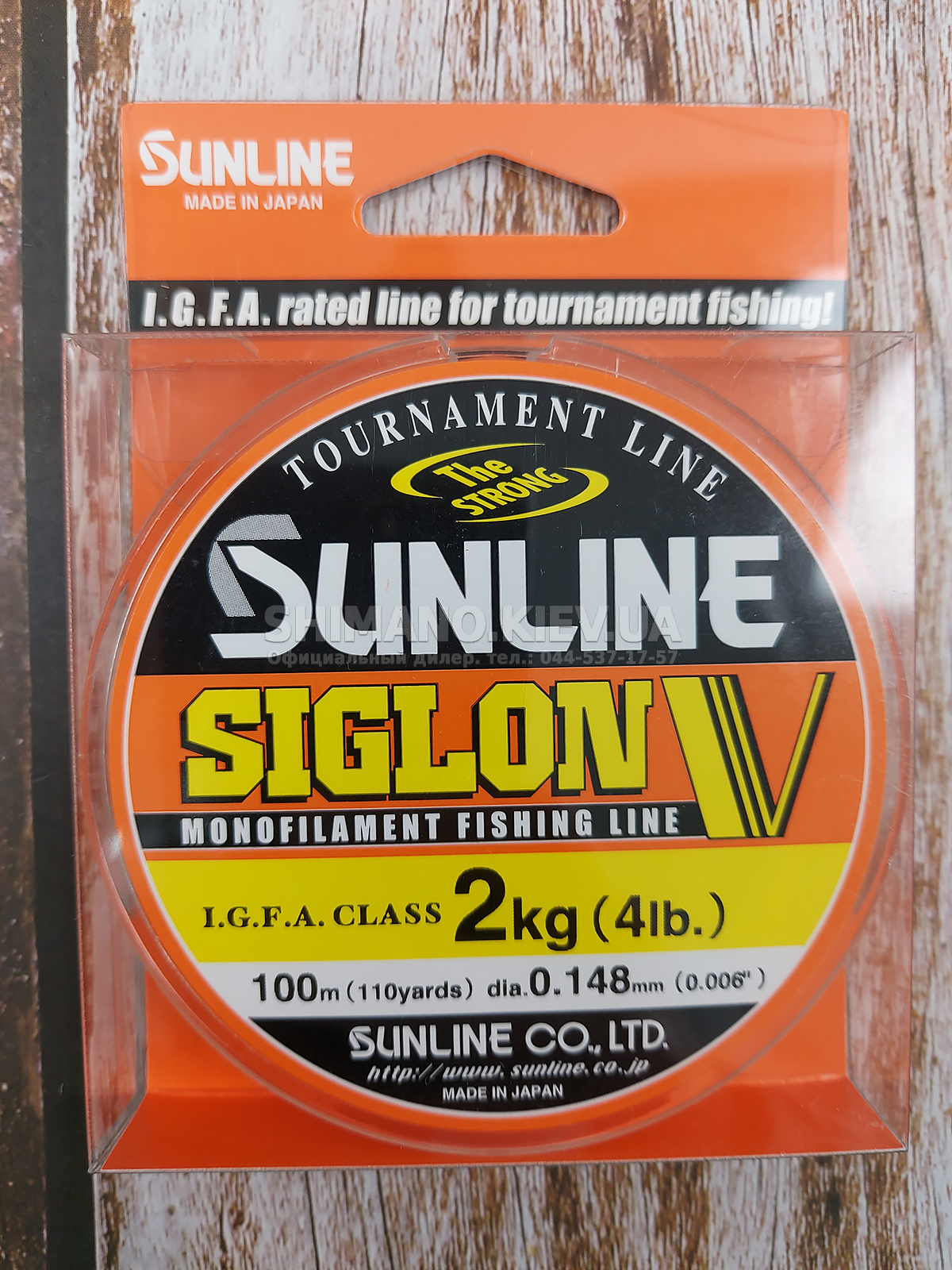 Оновлена версія бюджетної універсальної високоякісної волосіні. Siglon V має тришарове покриття полімерною смолою за новим методом, що значно покращує її робочі якості. м'якість, міцність, розтяжність, зносостійкість та знижує вологопоглинання. Цю волосінь можна з однаковим успіхом використовувати для різних методів як літньої, так і зимової риболовлі. Лісочка випускається в розмотках 30, 100 і 150м, при цьому розмотування 30 і 100м поставляються в зручних блоках по 10 з'єднаних між собою бобін. Висока якість, широкий спектр діаметрів, демократична ціна робить Siglon V однією з найкращих пропозицій щодо співвідношення ціна/якість на ринку.