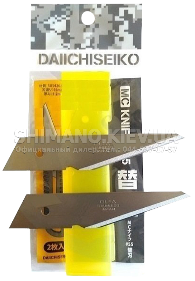 Змінні леза DaiichiSeiko MC Knife #55 призначені для однойменного ножа, який застосовується в риболовлі для оброблення невеликої риби або під час виготовлення оснасток. Вони виконані в Японії із якісної нержавіючої сталі SUS420J2. У комплекті 2 запасні леза.
